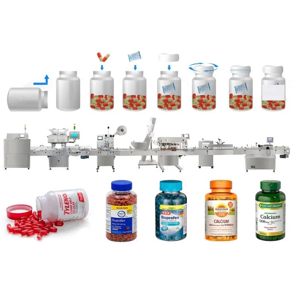 Máquina automática para contar cápsulas de tabletas de suplementos para el cuidado de la salud, llenado, tapado y etiquetado de botellas