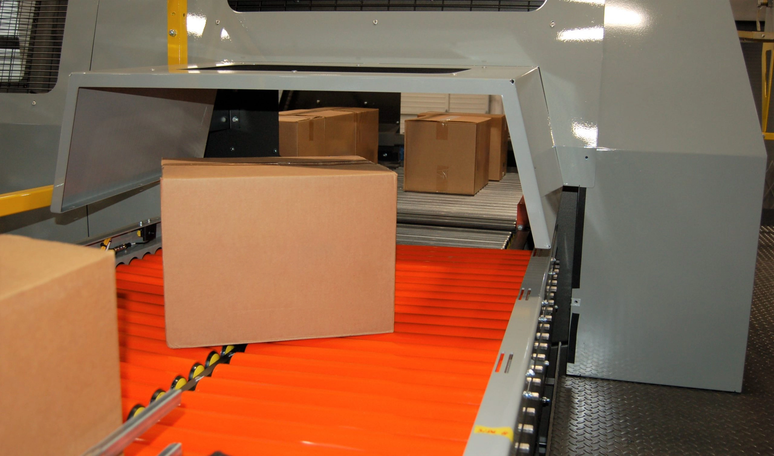 Imagen de un paletizador de alto nivel HL6200 con una entrada curva.